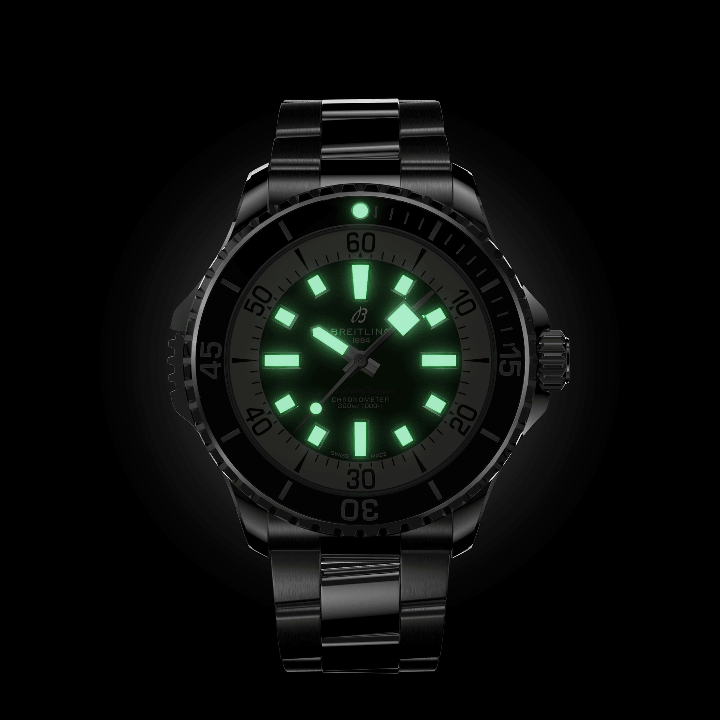 Performance and style for all your water-based pursuits. In the 1960s, the new sport of scuba diving was all the rage. For divers, timing was everything, and Breitling set out to give them the most clear-cut dive watch possible by eliminating any feature that didn t support their lifesaving needs underwater. This pared-down watch was named the Slow Motion. What remained were clean lines, chunky luminescent indexes, squared-off hands and a high-contrast dial ring, all aimed at maximum legibility. Practical, yes. But what people really fell in love with was the look. The new Superocean retraces the Slow Motion's celebrated design codes, while adding modern features, like a ceramic-inlayed bezel and brightly colored dials. Broad hands and indexes in luminescent Super-LumiNova allow for easy readability underwater. The watch is water resistant to 300 m (1000 ft), as well as being shock-, sand- and saltwater-resistant. Its scratch-proof ceramic inlayed bezel will never wear or fade. For safety, the bezel is uni-directional on most sizes and bi-directional with a patented lock on the 46 mm. Best of all, this is no longer strictly a dive watch surf with it, swim with it, hit the beach bar with it, then wear it out to dinner. The Superocean perfectly balances the nostalgia of its heritage with a fresh new look.