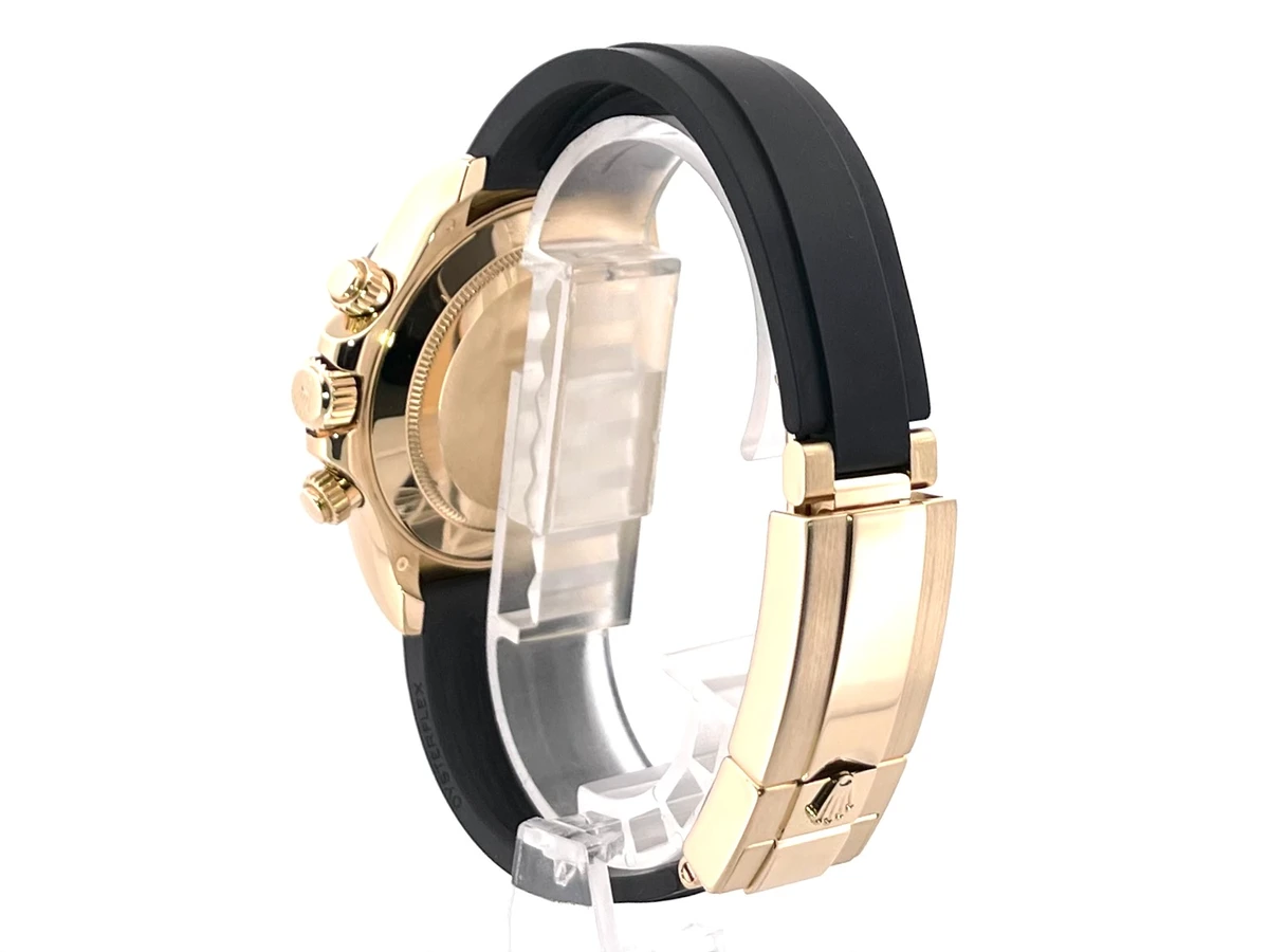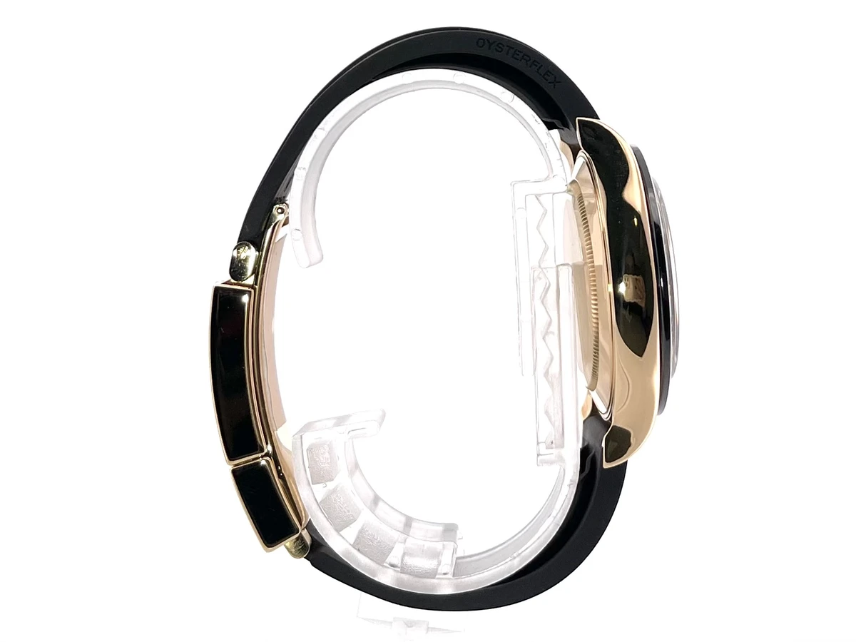 Coming soon! This item will be available to ship in 3-6 weeks. Photo is representative-only.Pre-Owned Rolex Cosmograph Daytona (116518LN) self - winding automatic watch, features a 40mm 18k yellow gold case with a black Cerachrom bezel surrounding a champagne dial on a black Oysterflex bracelet with an 18k yellow gold deployant buckle. Functions include hours, minutes, small seconds, chronograph and tachymeter.This watch comes complete with box and papers. Scattered Serial.Time remaining on the factory warranty!