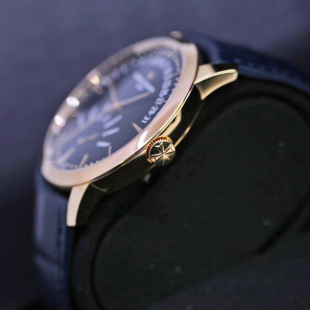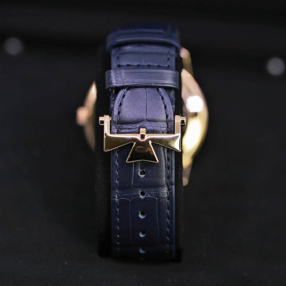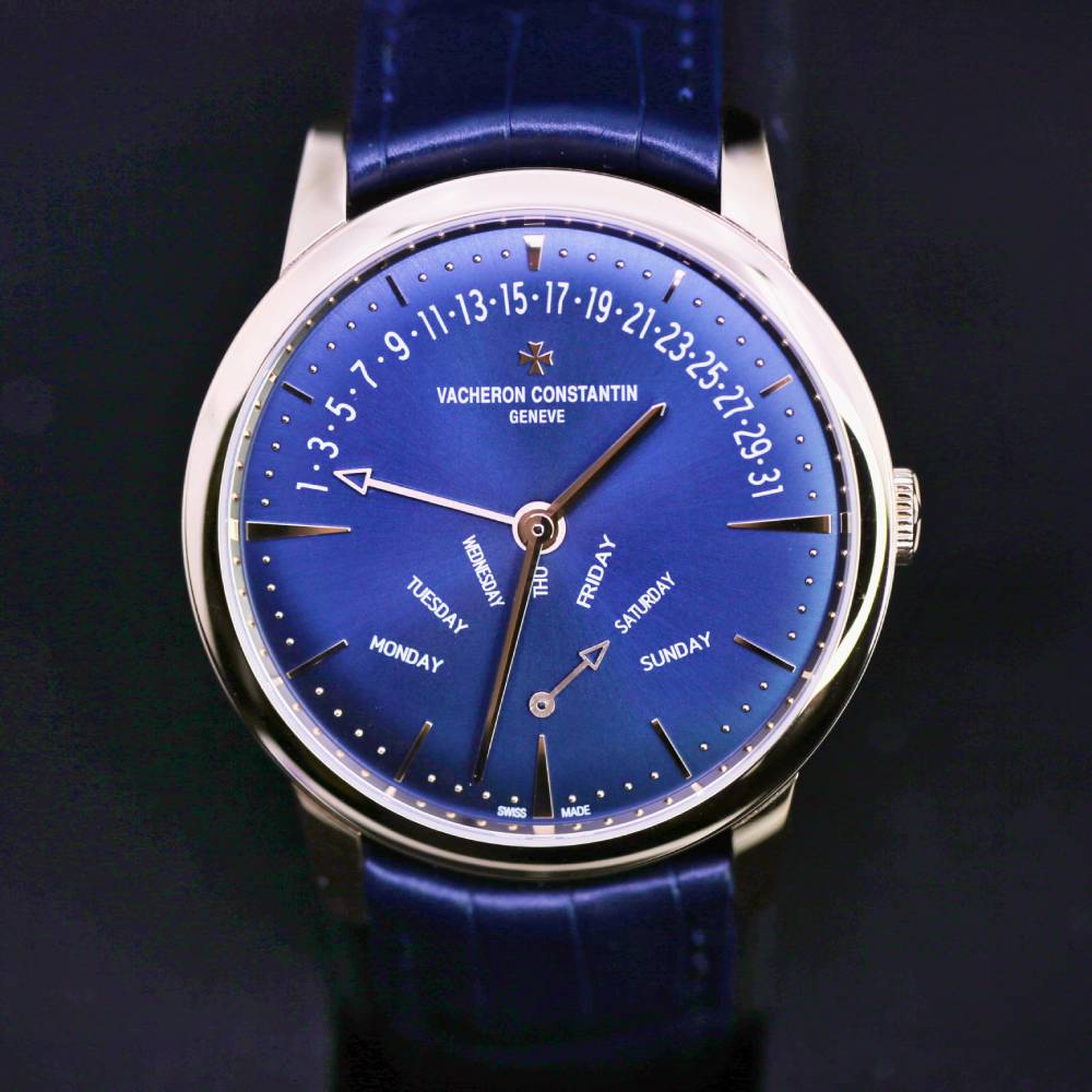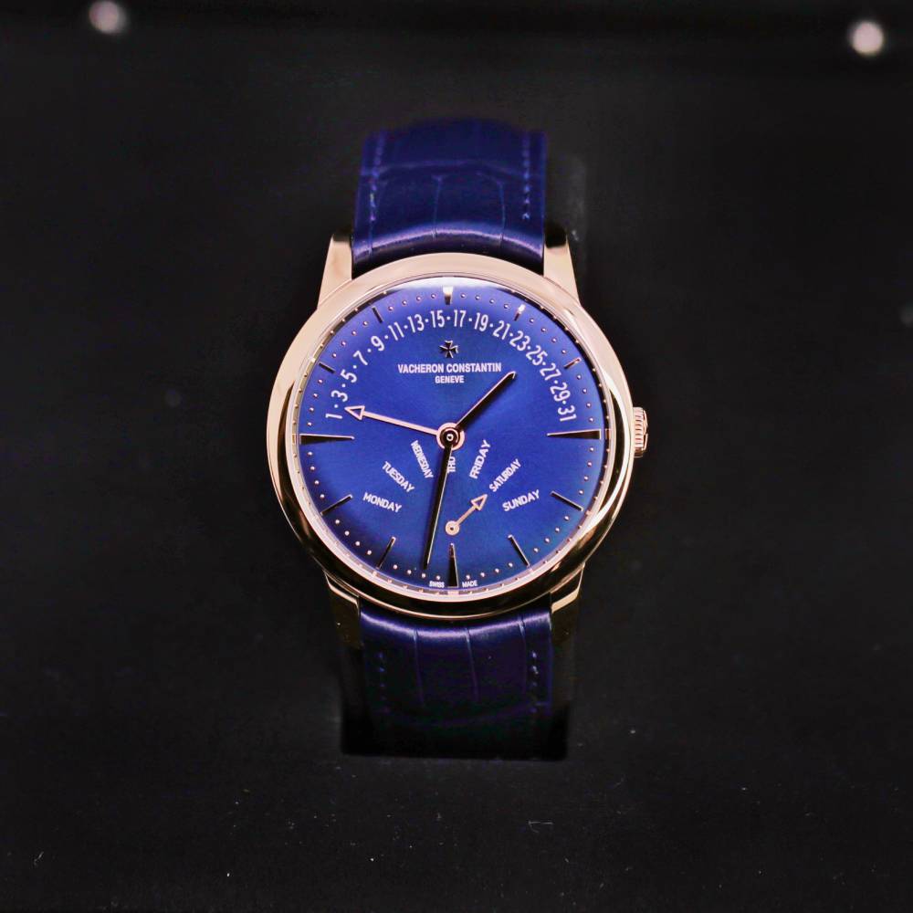 Unworn Vacheron Constantin Patrimony Retrograde Day-Date 4000U/000R-B516, 42.50 mm. The watch has Blue Dial. The Case is rose gold, Caliber # 2460 R31R7/2 w/ 27 Jewels, 40 hours power reserve. The Bracelet is Mississippiensis alligator with Deployant buckle. The Water-resistant is up to 30 m. The Watch comes complete with Vacheron Constantin Papers & Box. Covered with Vacheron Constantin 2-Year Warranty.