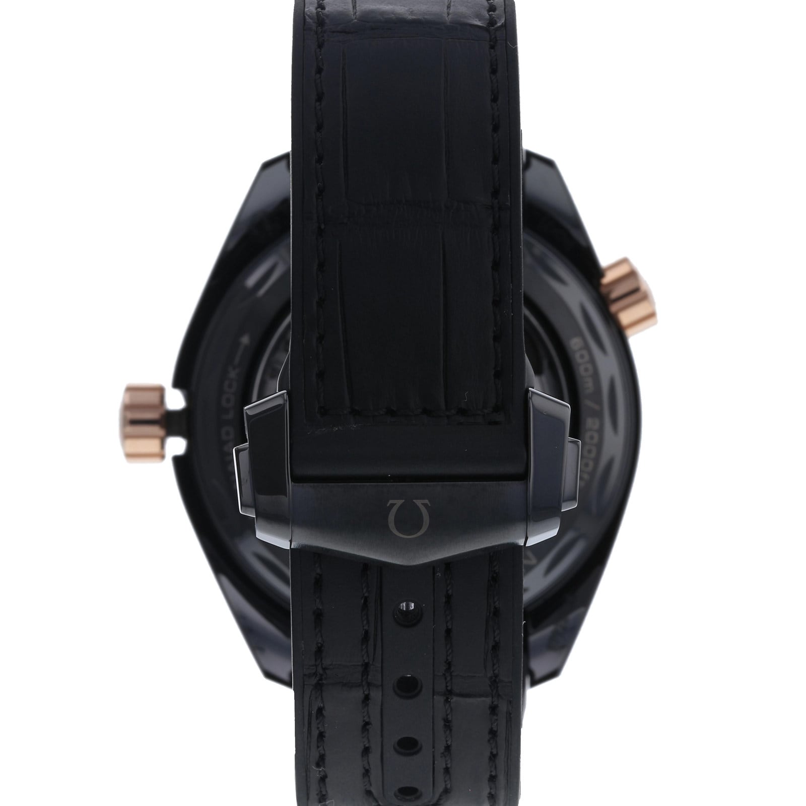Showcased in a deep black 45.5mm ceramic case and protected by sapphire crystal glass, this high-performance watch boasts a 18ct gold bezel with a Ceragold diving scale, as well as a black ceramic dial with a GMT ring, 18ct gold Arabic numerals, luminescent hands and hour markers and a date display window at 3 oclock.