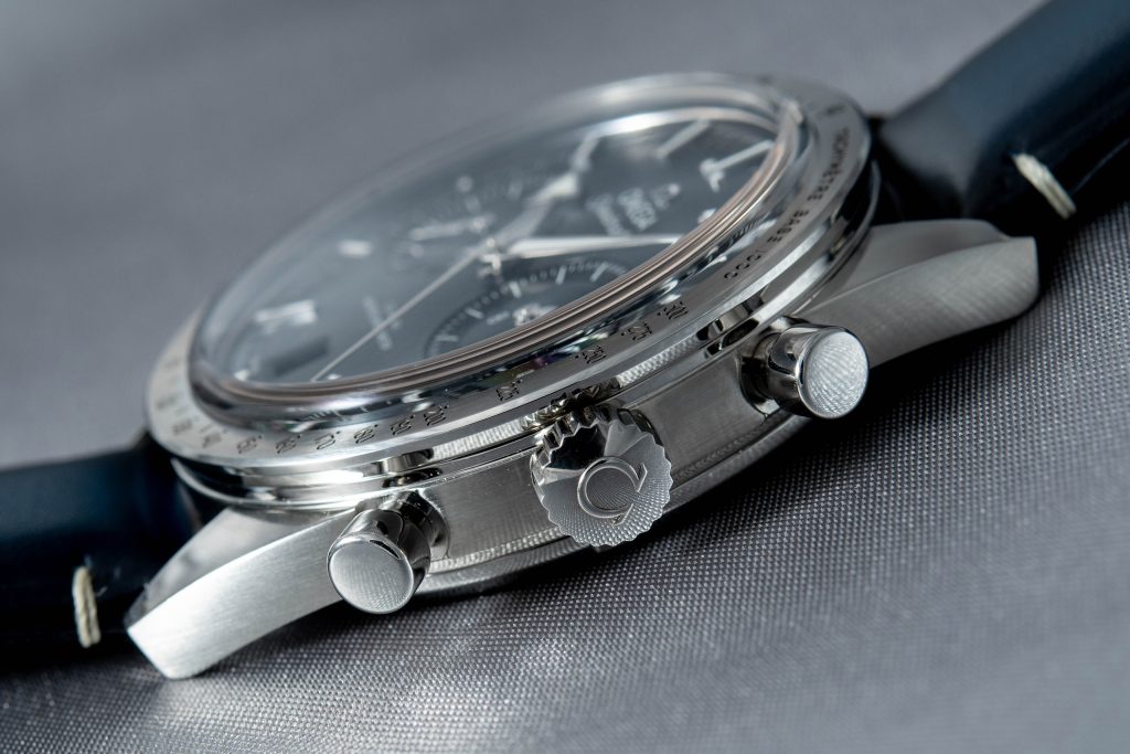 The Speedmaster is one of OMEGAs most iconic timepieces. Having been a part of all six lunar missions, the timepiece is an impressive representation of the brands adventurous pioneering spirit.This 40.50 mm model, inspired by the legendary 1957 original, features a stainless steel case and a blue dial with rhodium-plated hour markers and Broad Arrow hands - all featuring white Super-LumiNova. There is a date window at 6 oclock, a small seconds subdial at 9 oclock, and 12-hour and 60-minute chronograph recorders on the subdial at 3 oclock.The brushed bezel includes a blackened tachymeter scale, while on the caseback, there is a Speedmaster 57 engraving as well as a flat sapphire crystal with an anti-reflective treatment inside.The watch is presented on a blue leather strap with an OMEGA logo in postive relief on the buckle, and is driven by the manual-winding OMEGA Co-Axial Master Chronometer Calibre 9906.