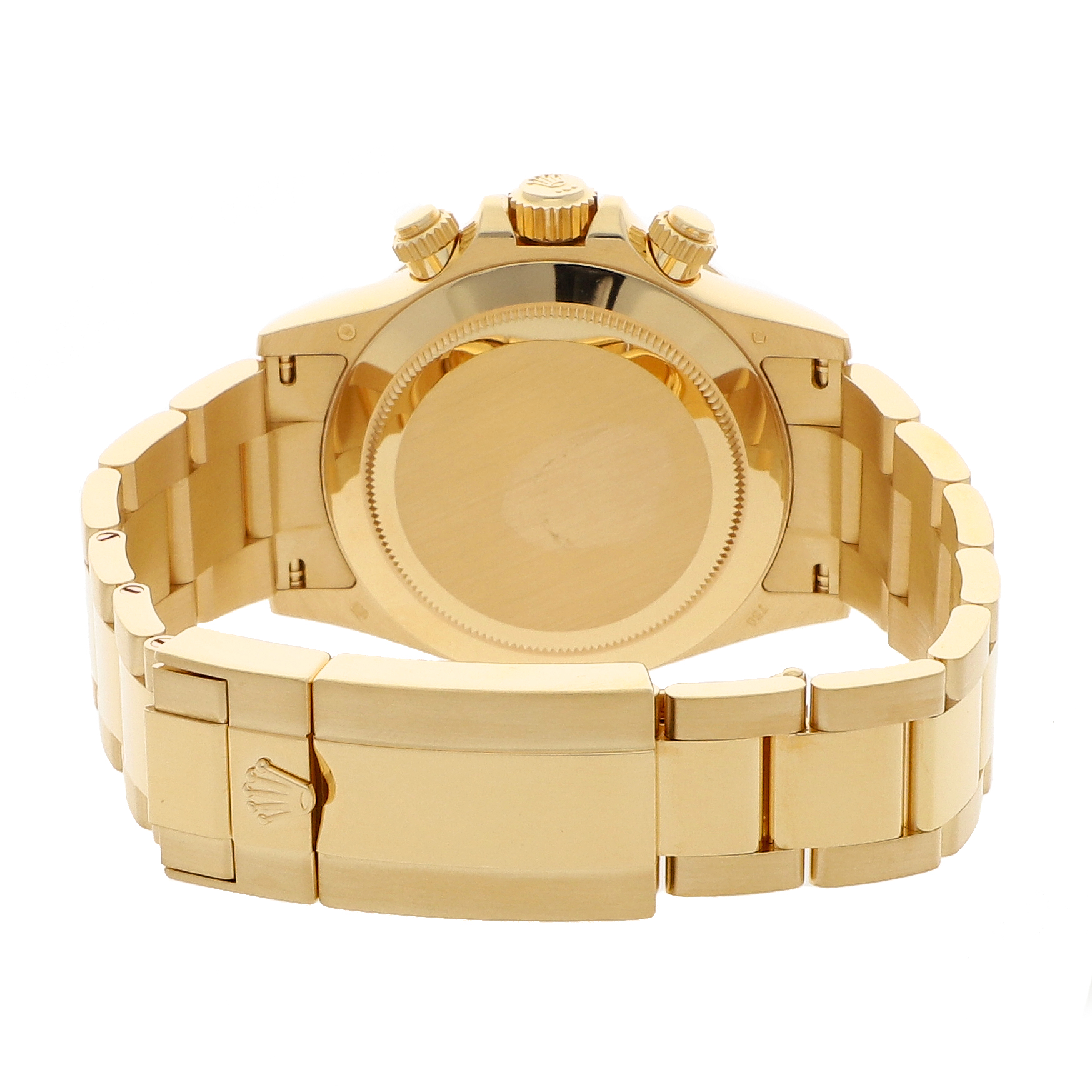 Pre-Owned Rolex Daytona Cosmograph (116508) self - winding automatic watch, features a 40mm 18k yellow gold case surrounding a champange diamond dial on an 18k yellow gold Oyster bracelet with folding buckle. Functions include hours, minutes, small seconds, chronograph and tachymeter. This watch does not comes with box or papers. Scattered Serial.We back this watch with a 2-Year WatchBox warranty!