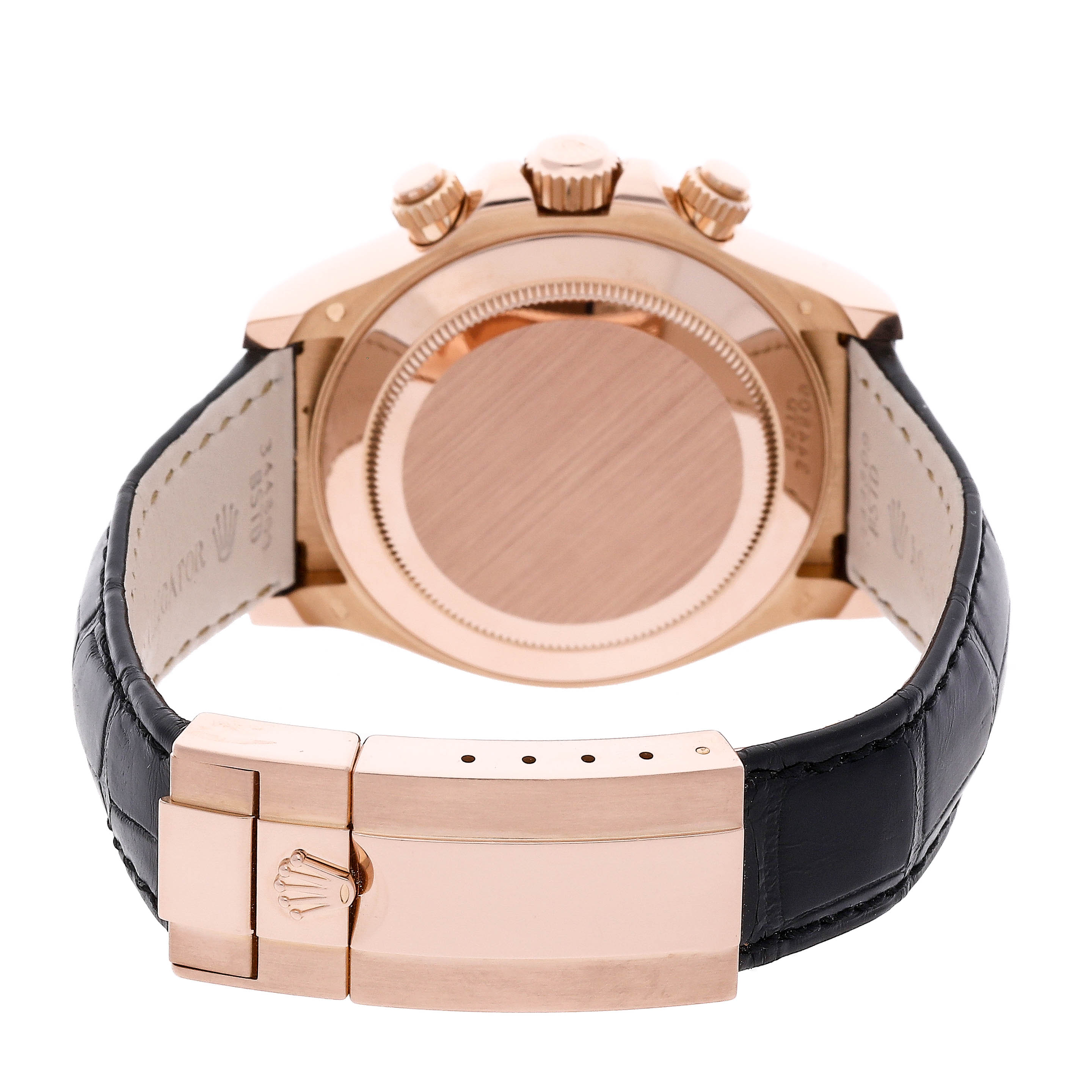 Pre-Owned Rolex Daytona Cosmograph (116515LN) self - winding automatic watch, features a 40mm 18k Everose gold case surrounding an ivory dial on a black alligator strap with an 18k Everose gold deployant buckle. Functions include hours, minutes, small seconds, chronograph and tachymeter.This watch comes complete with the original box and papers. Scattered Serial.We back this watch with a 2-Year WatchBox warranty!
