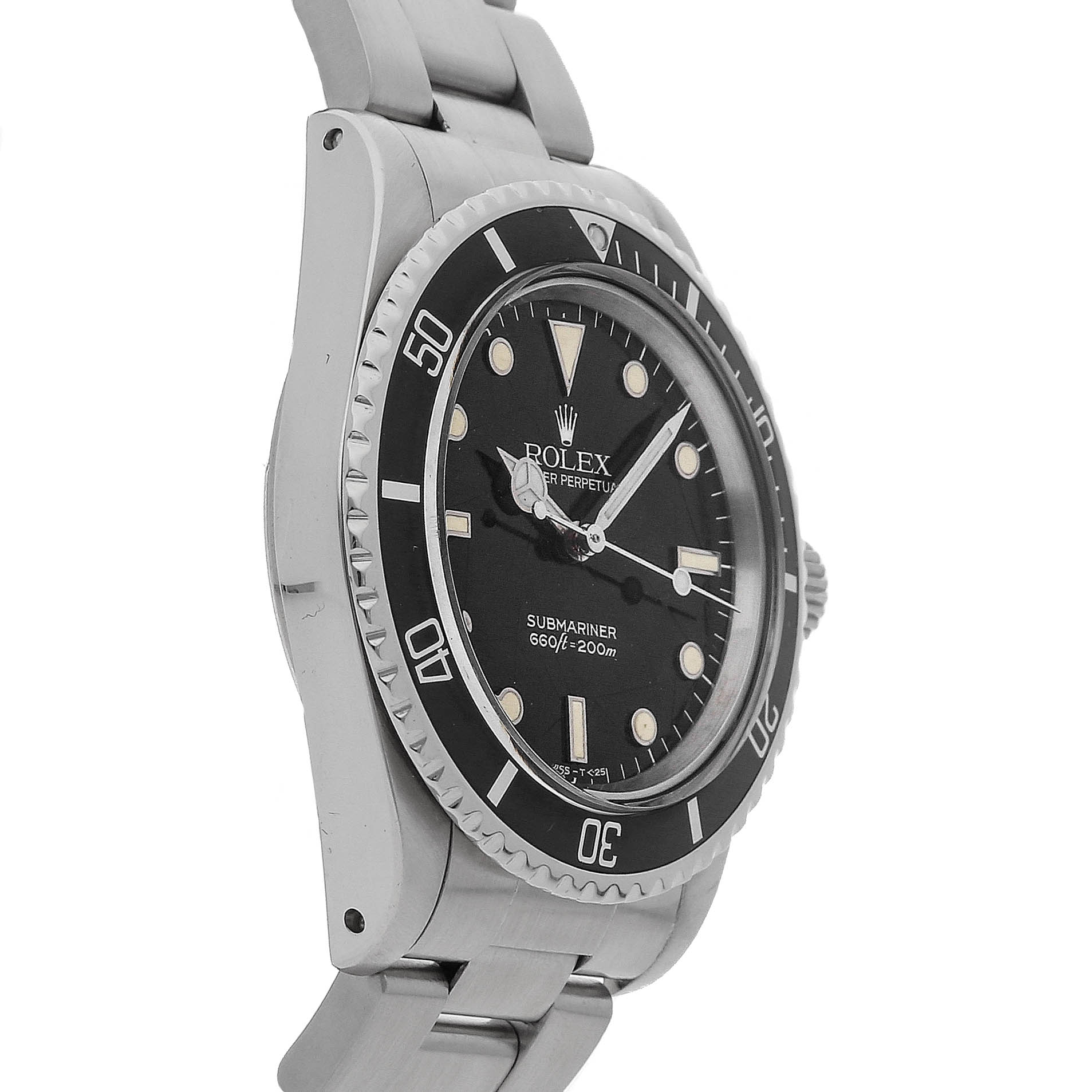 Pre-Owned Rolex Vintage Submariner "No Date" (5513) self-winding automatic watch, features a 40mm stainless steel case surrounding a black dial on a stainless steel Oyster bracelet with folding buckle. Functions include hours, minutes and seconds. This watch does not come with box or papers. 8.6 Million Serial.We back this watch with a 2-Year WatchBox warranty!